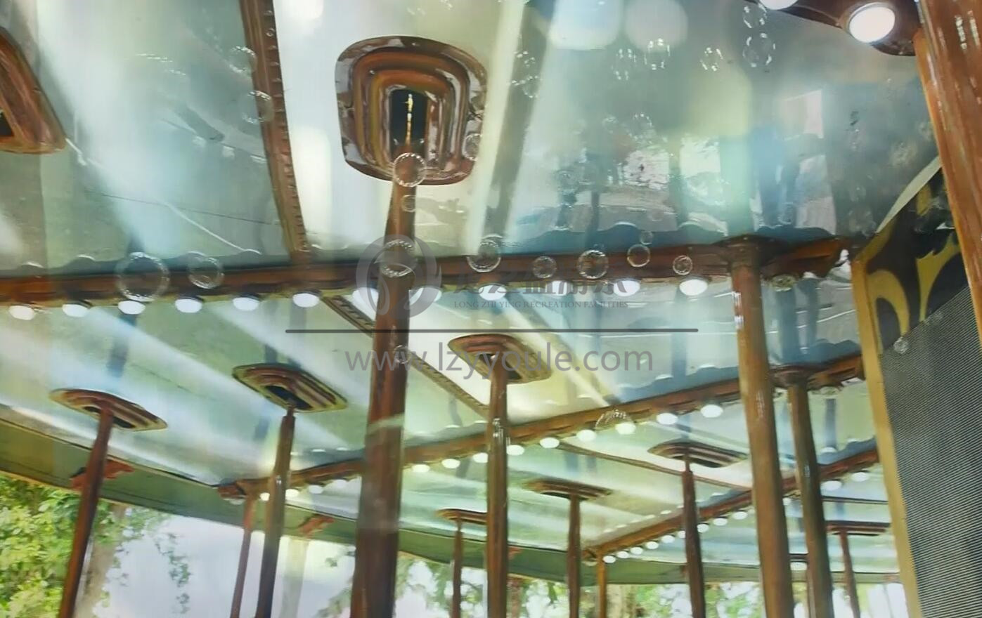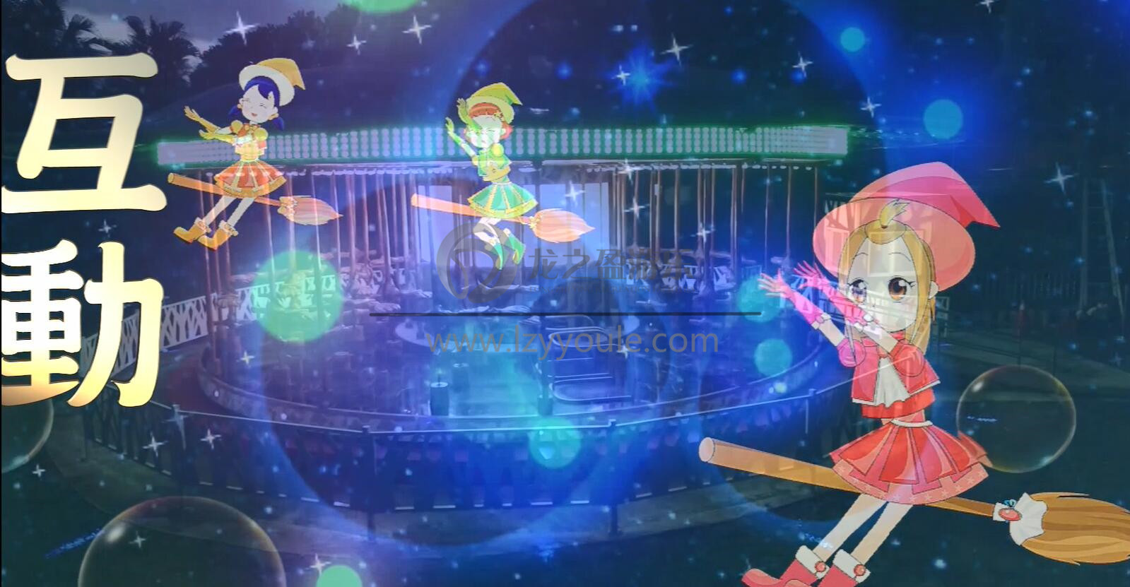 搭配中央顯示屏,結(jié)合精心華麗的天幕與地景,以及奇幻的煙霧、泡泡等特效,提供白天到黑夜的神奇魔法飛行體驗。