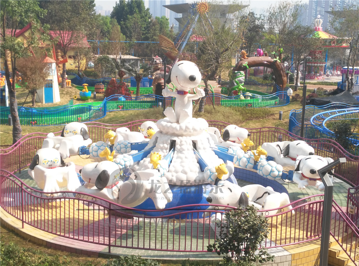 新型游樂設備——飛天史努比是許昌龍之盈游樂設備有限公司的**產品,利用自控飛機原理,結合系列電影《史努比》元素,開發的一款新型游樂項目,整體顏色以白色和藍色為主,像碧綠的海面一樣,在天空中飛翔的白色可愛的史努比像及了天空中飄浮的云朵,和藍色的天空相互呼應,承現出一幅碧海藍天的美麗景像!通過里面的控制,每個人都可以控制史努比飛行的高低,游客坐著可愛的史努比在藍色的天空下盡情地飛翔,超夢幻的感覺,更受市場的歡迎。