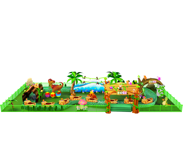 與花果山漂流的西游記主題截然不同,叢林探險整體風格采用叢林主題,景觀裝飾造型絢麗多彩、栩栩如生。這里有威風凜凜的霸王龍,有形態(tài)憨厚的小恐龍和七彩恐龍蛋。有神秘色彩、時空隧道般的叢林洞,有枝繁葉茂的椰子樹,色彩迷人的小蘑菇,活靈活現(xiàn)的獅子和小松鼠,標志的荷蘭風車,有頑皮可愛的小猴子。