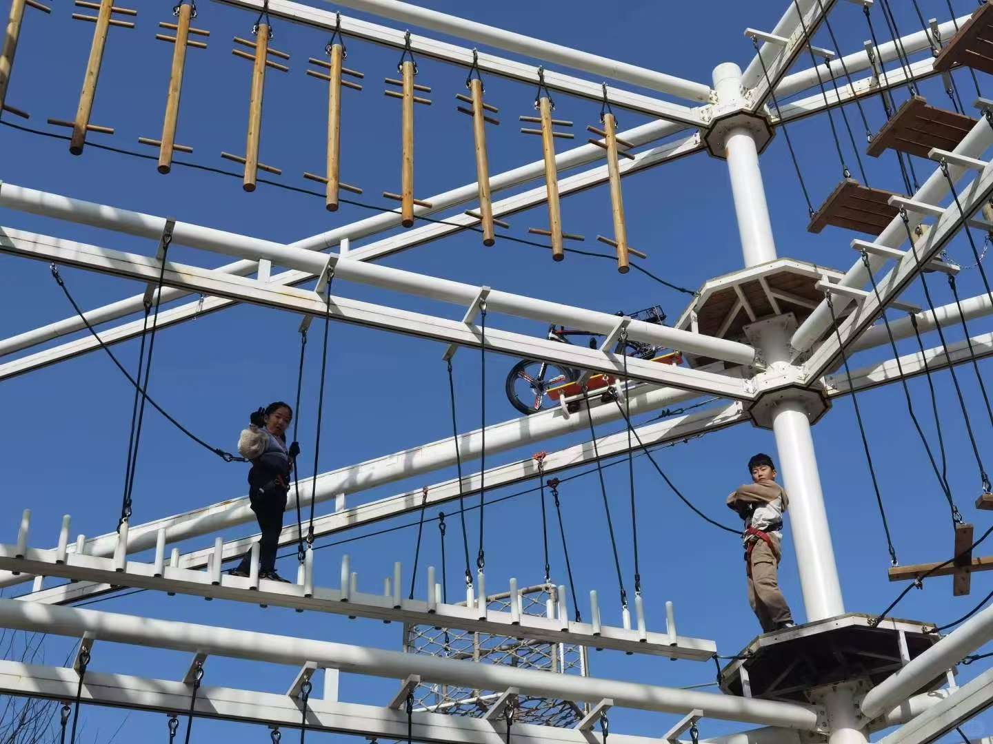 超過100種難度不同的游玩元素,包括高空單車、高空翹板橋、極速跨網、蘑菇瑪麗、高空走鋼索、障礙秋千、攀巖板等,適合戶外拓展、親子出擊、團建活動、情侶約會。